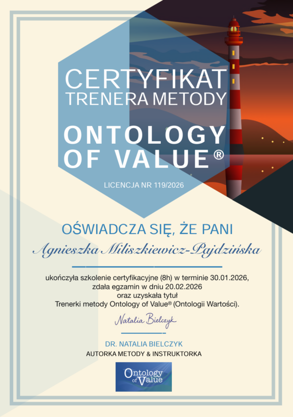 Administratorem Pani/Pana danych osobowych jest Coaching i rekrutacja Agnieszka Miliszkiewicz-Pajdzińska z siedzibą przy ul. Mehoffera 23/16, 01-131 Warszawa. Więcej informacji na temat procesu przetwarzania danych osobowych oraz przysługujących Ci praw uzyskasz w Polityce prywatności.